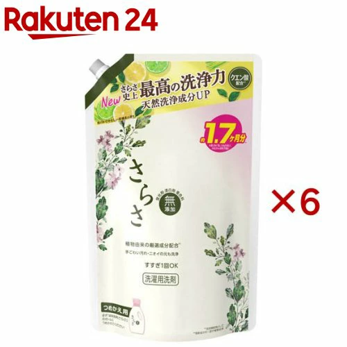さらさ 洗濯洗剤 ほのかでやさしい柑橘系の香り 詰替用 1260g×6個が楽天ポイント30倍!そこからさらにクーポンで30%OFF!!