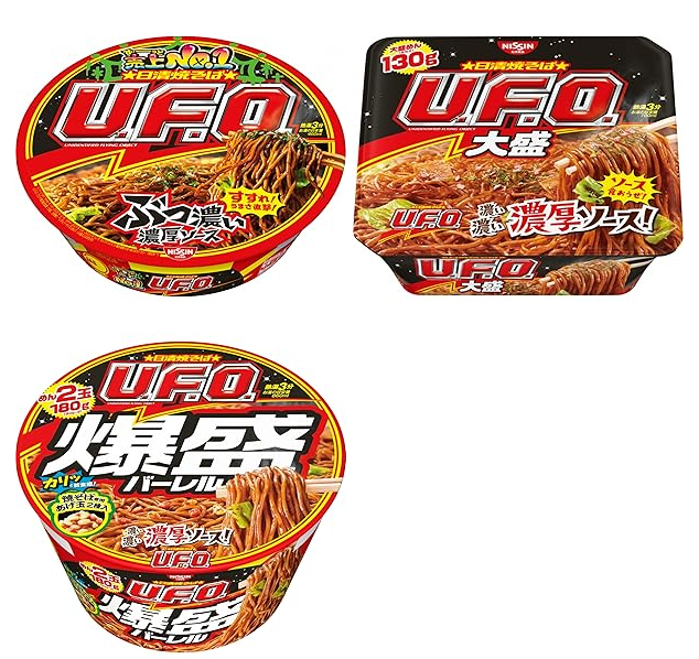 焼そばU.F.O.大盛り2,356円送料無料に、焼そばU.F.O.爆盛バーレル1,372円送料無料に、それぞれセール中ですよ!