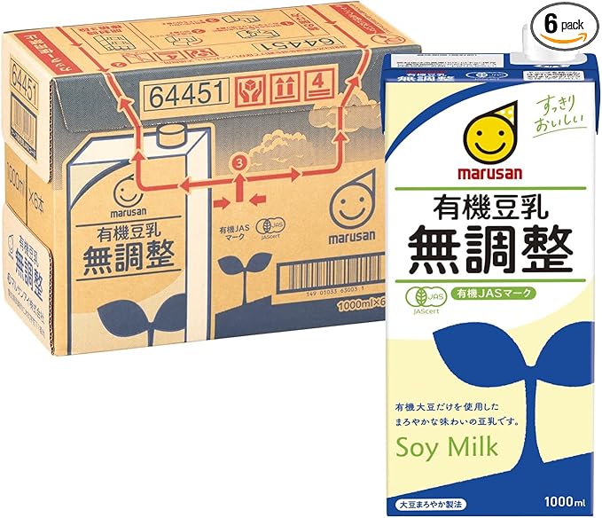 マルサン 有機豆乳 無調整 1000ml×6本がプライム感謝祭・10%OFFクーポン(PAKNCC10)・定期おトク便5%OFFで1,032円送料無料に!