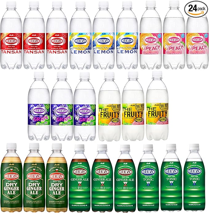 タンサン、レモン、ピーチ、グレープ、グレープフルーツ、トニック、ジンジャエール、ドライジンジャエールの8種類が3本ずつ入ってますよ!ハイボールや、そこら辺がお好きな方は是非どうぞ。