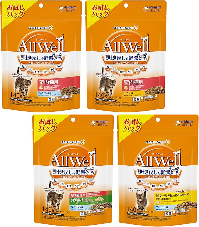 オールウェル キャットフード ドライ 140g×4袋 4種お試しパックがクーポンで50%OFF!!