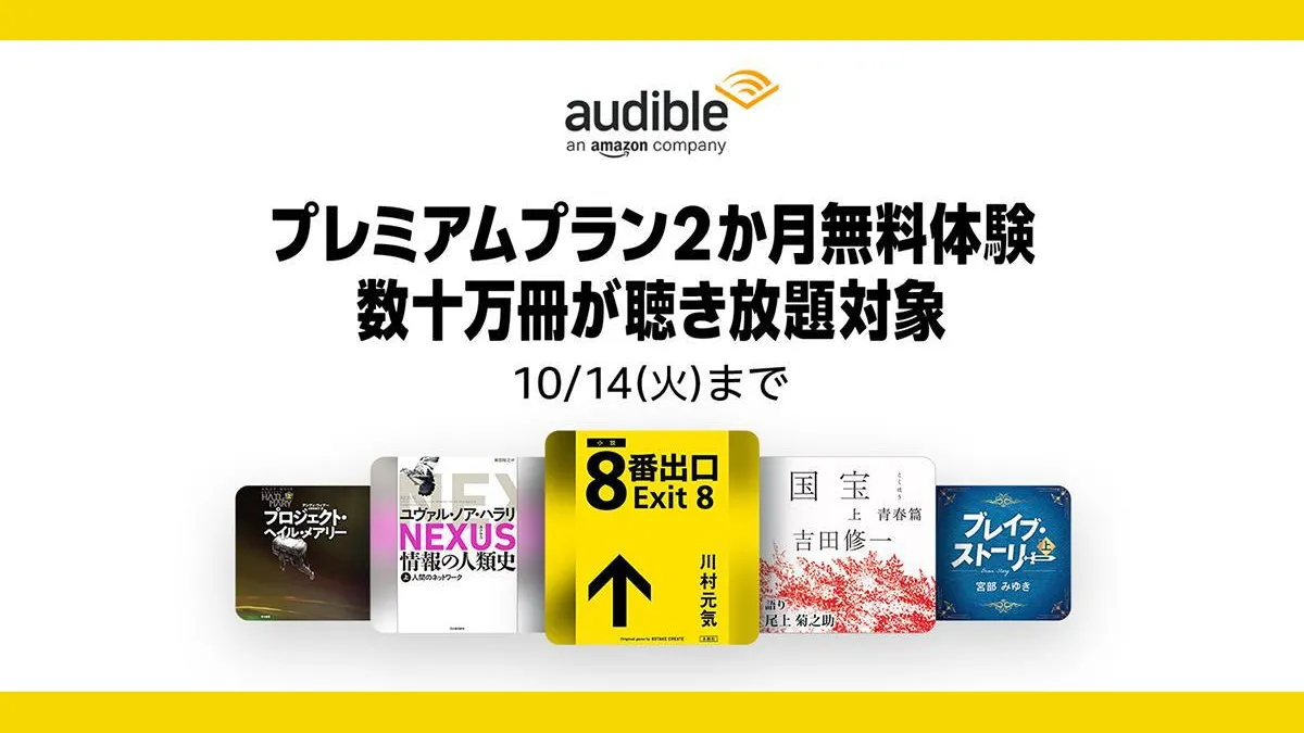 20万作品以上が聴き放題、本の朗読サービスの、Amazon Audible オーディオブックにて2ヶ月無料体験キャンペーンが開催中ですよ!プライム会員限定です。