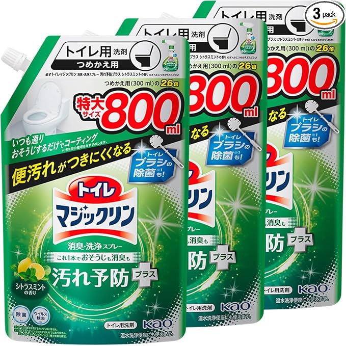 花王 トイレ マジックリン 汚れ予防プラス シトラスミントの香り 詰替用 800ml×3個が35%ポイント還元!