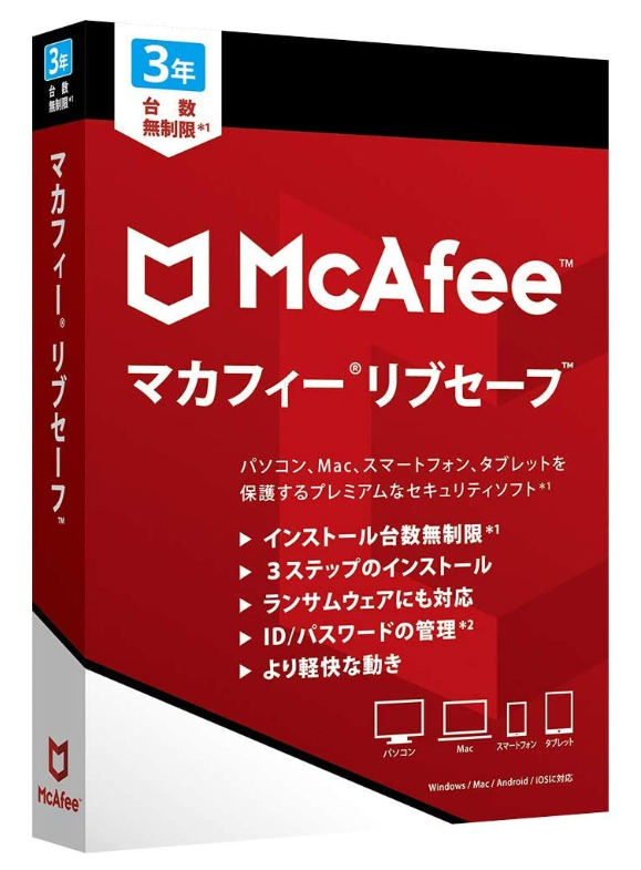 マカフィー リブセーフ 台数無制限 3年版が3,000円!