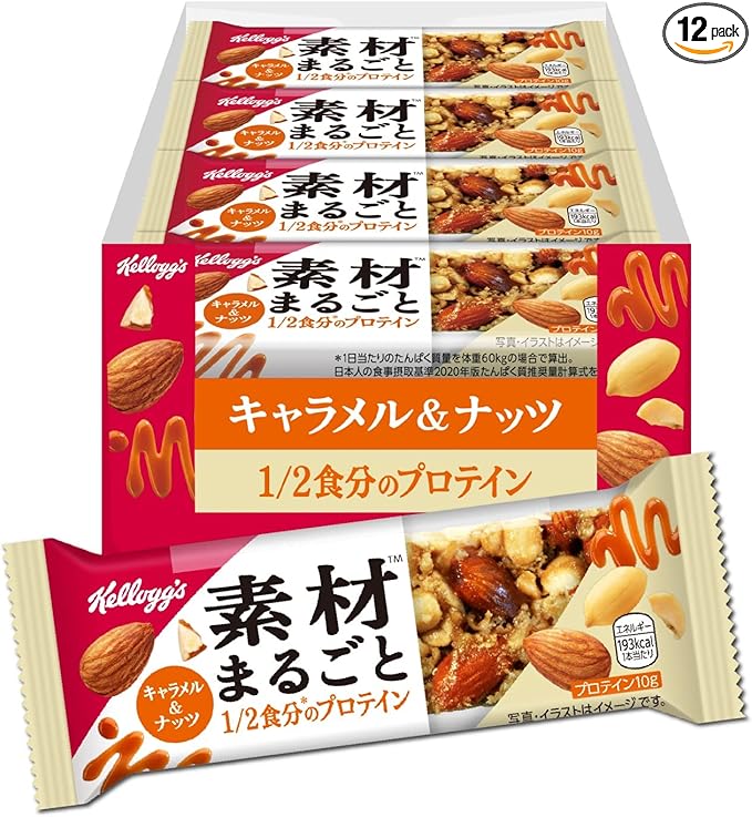 ケロッグ 素材まるごとプロテインバー キャラメル&ナッツ 12本セットが1,440円送料無料に!