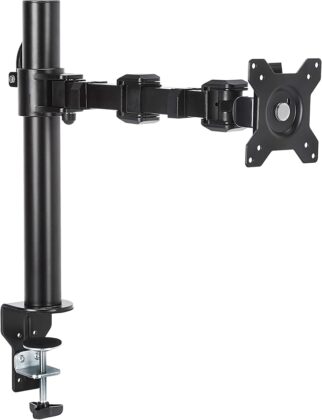 最大32インチx2台まで対応。アーム1本約10キロ迄。約1cmから10.8cm以内の厚さのデスクに取り付け可能。75x75mmまたは100x100mmのVESA規格対応。Amazonベーシック製なので謎な中華製より安心感あると思いますよ!