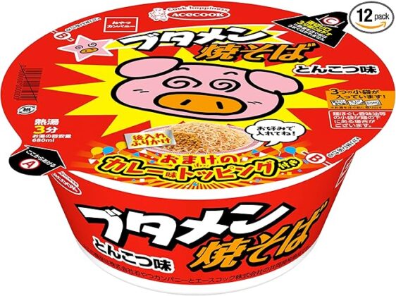 エースコック ブタメン焼そば おまけのカレー味トッピング付き×12個がアウトレット特価!